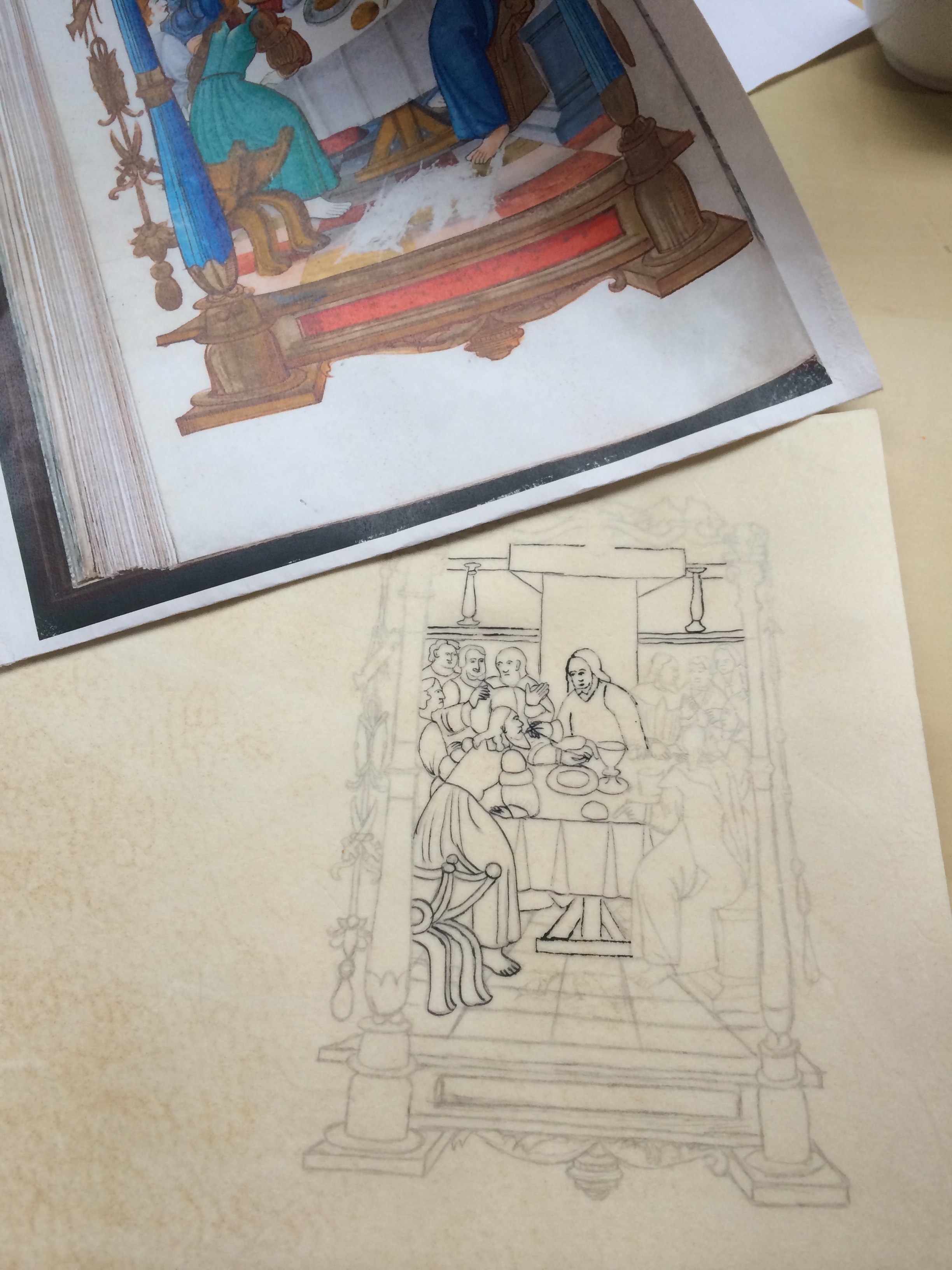 Sketching and inking an image from a period original