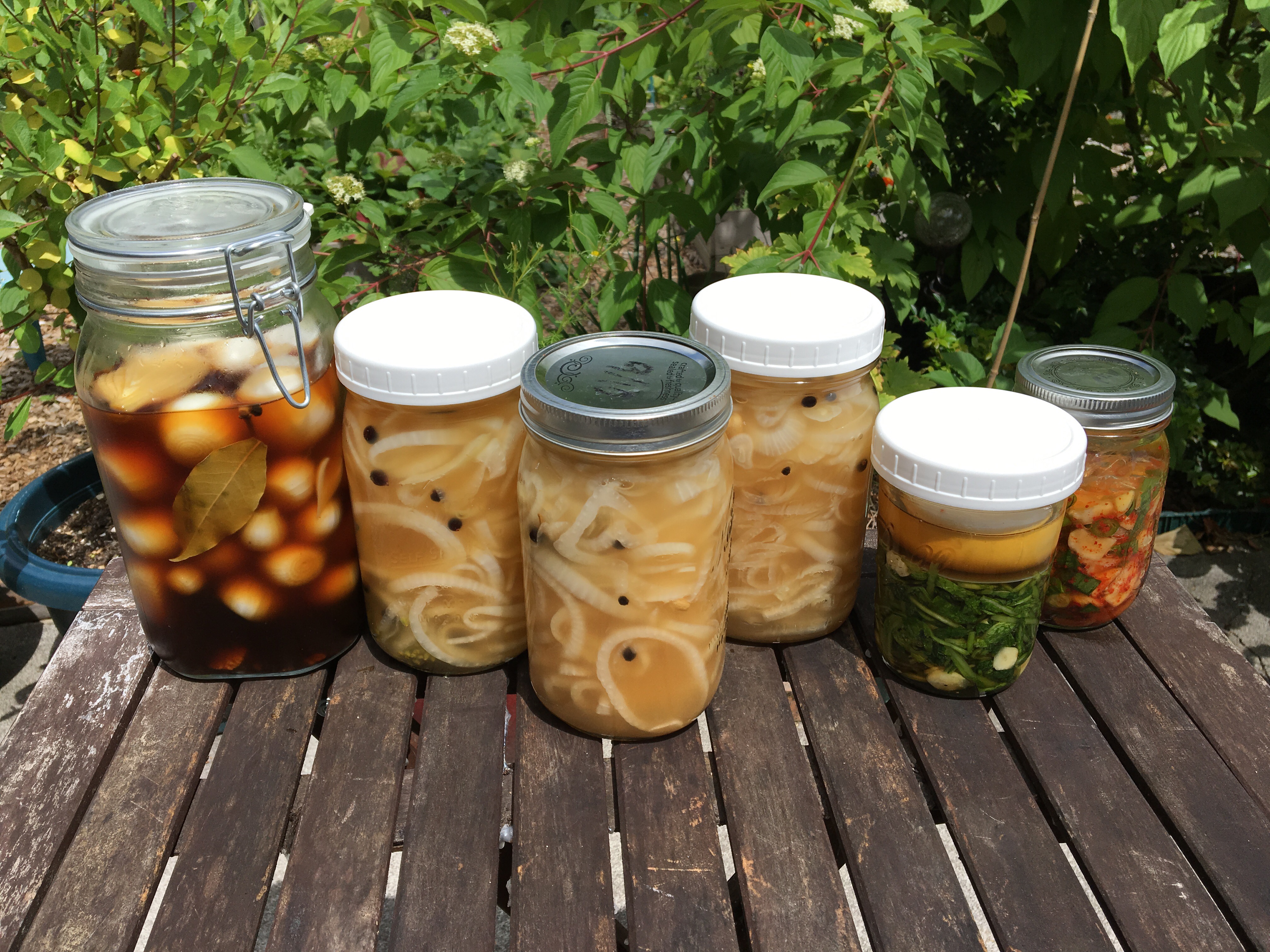I love pickled foods. Fermented, briny, tart — I think I like pickled vegetables more than fresh in many cases. Between garden produce and the Farmers’ Market, I had a lot that I wanted to pickle this week. Here are the end results: