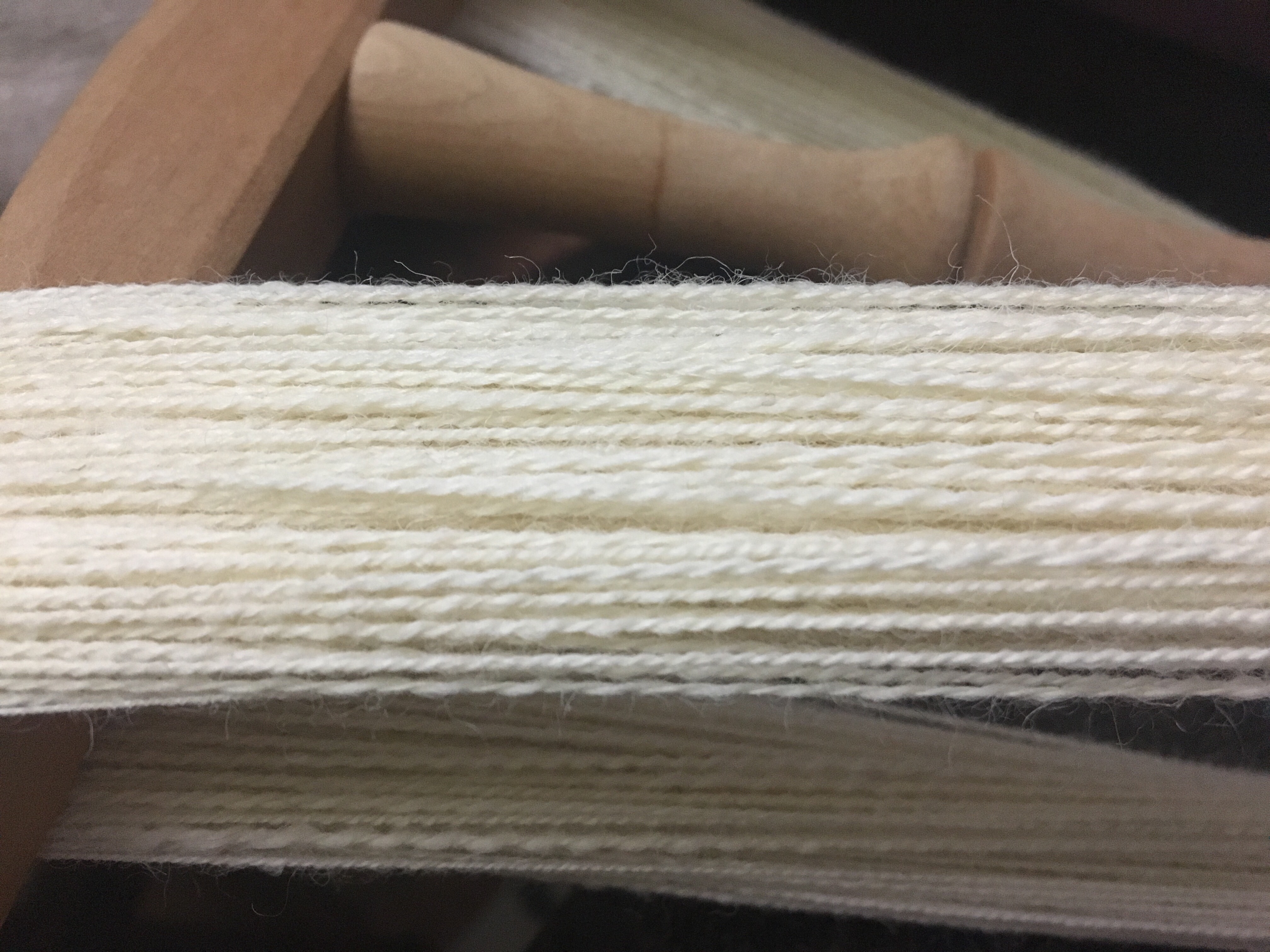 I’ve gotten pretty hooked on distaff spinning. Here’s my latest batch after plying, still on the niddy-noddy: