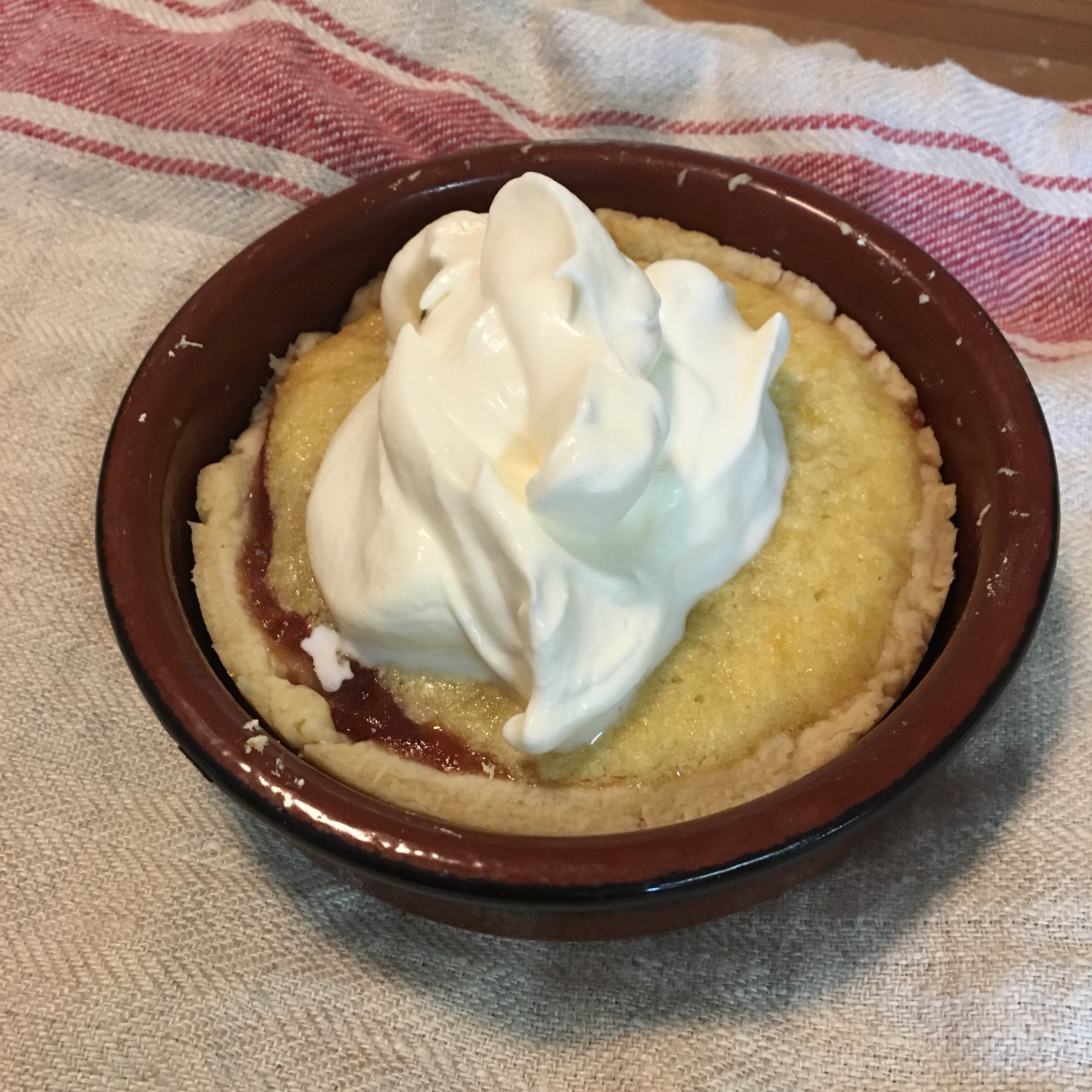 Once the crusts have come out of the oven and cooled enough to remove the weights and parchment, spread a teaspoon of jam or preserves in the bottom of each, then top with the almond mixture. Be careful not to overfill (hence splitting the recipe between 8 small tarts). Bake tarts for 30 minutes. Let cool prior to serving.